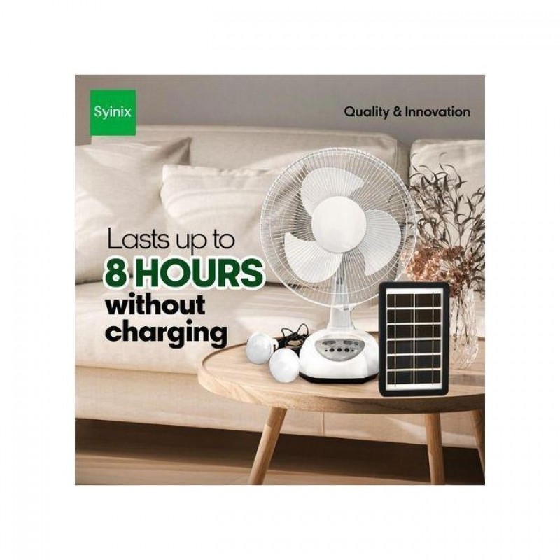 Syinix 12 Inches Rechargeable Fan +Solar Panel +13 Months Warranty