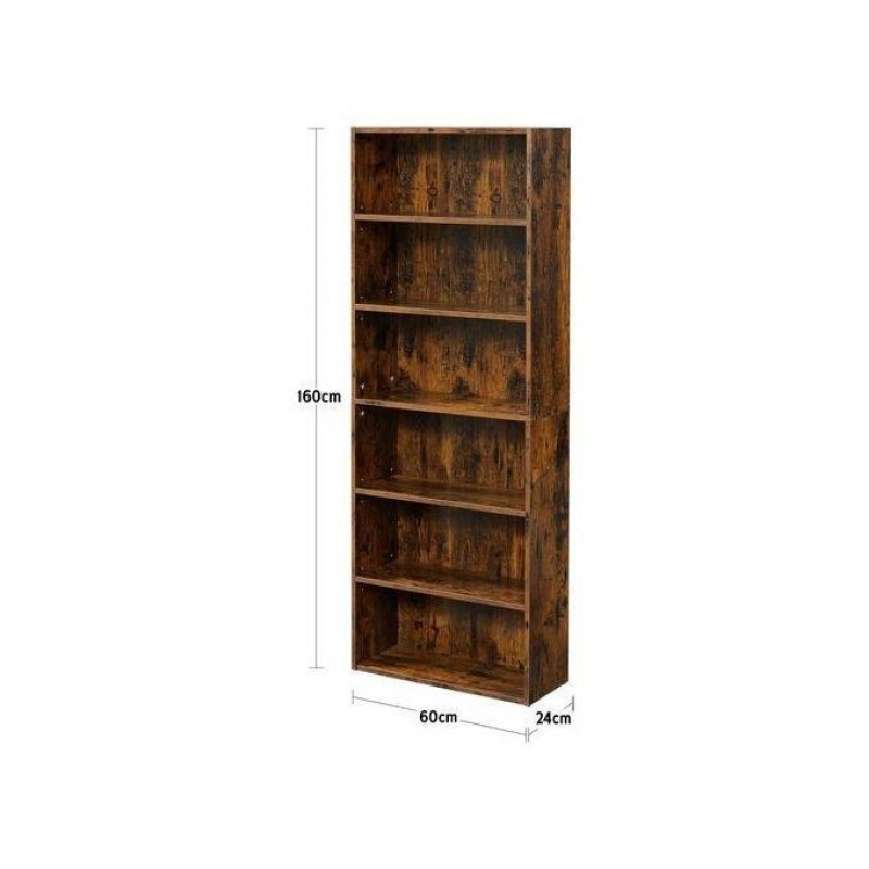 LASA 6-Tier Open Bookcase – Freestanding Industrial Style