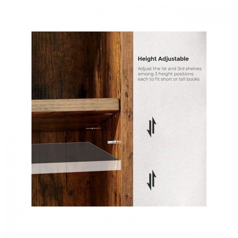 The top two shelves can be positioned at three different levels, creating storage spacing between approximately 22 and 28 cm. This allows flexibility for taller books, boxes, or art.