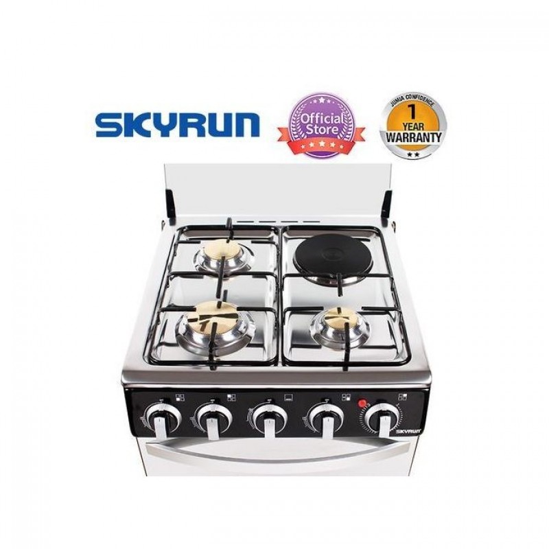 Skyrun 3 Burners+1 Electric Hotplate Gas Cooker 50x50 (GCS-3G1E/X) -Black.